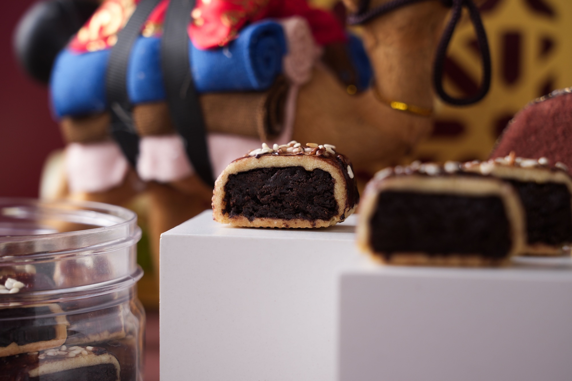 A modern chocolate twist on the classic Indonesian sesame ball, featuring a rich cocoa crust and a chocolate-infused mung bean filling.