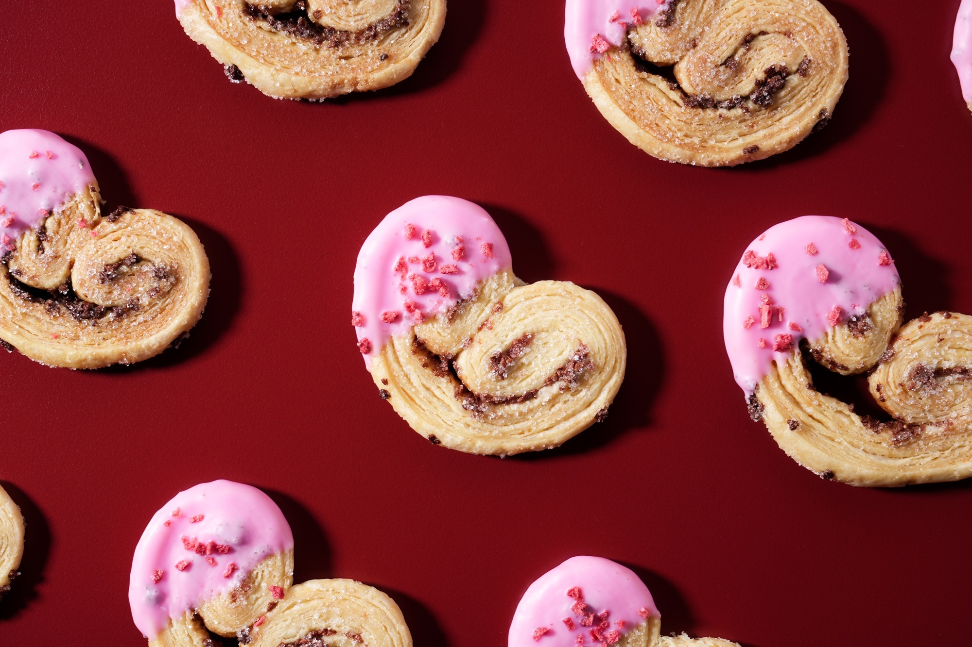 These delicate, heart-shaped palmiers feature a crisp, buttery puff pastry infused with sweet strawberry flakes and a coating of strawberry...